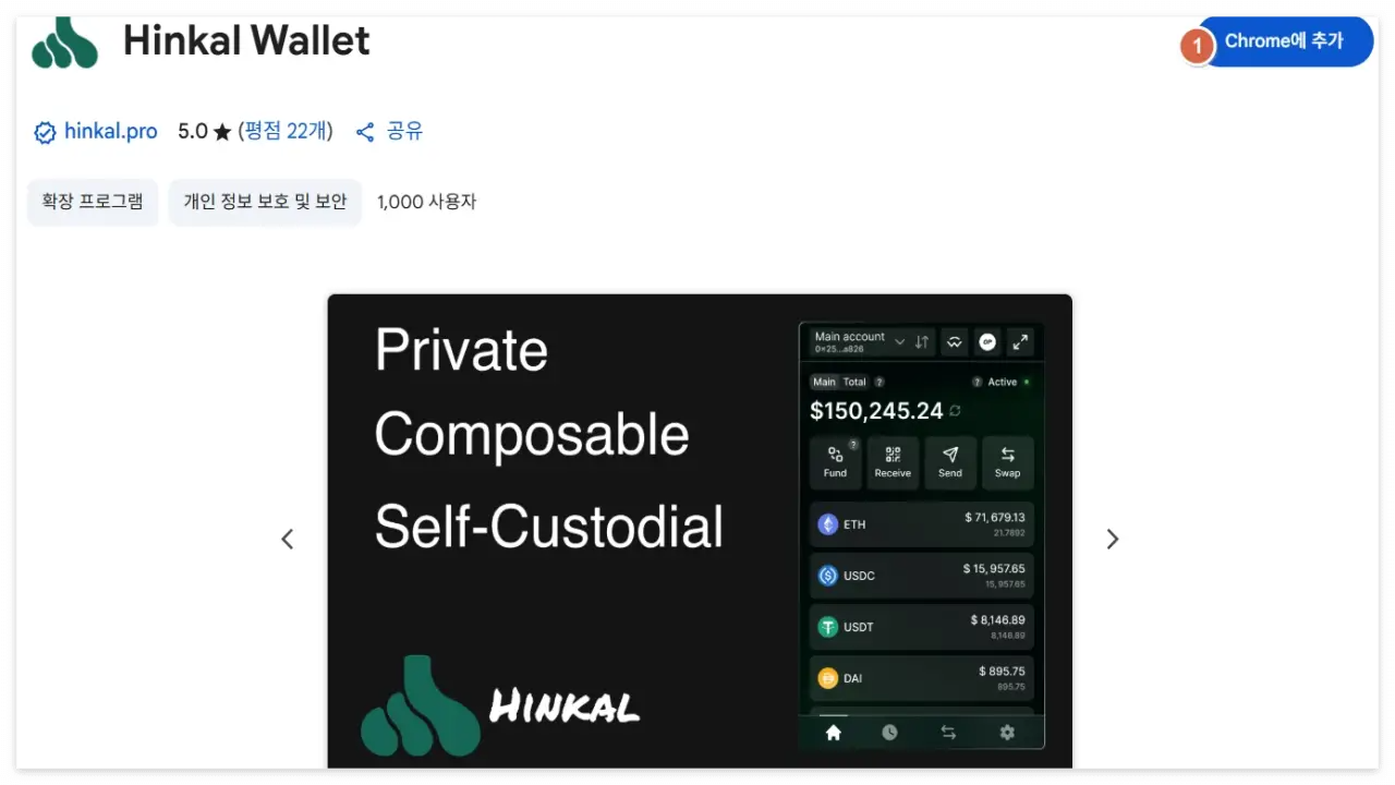 👉 https://hinkal.pro 또는 https://app.hinkal.pro로 직접 이동합니다. 브라우저 검색으로 접근시, 스캡 사이트에 접근할 수 있습니다. 꼭 공개된 URL을 확인해 주시기 바랍니다. 지갑다운로드 버튼을 클릭합니다.