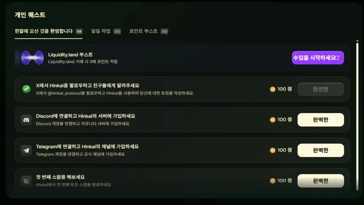 - Follow Hinkal on X (트위터에서 힌칼 팔로윙): 100포인트 ②